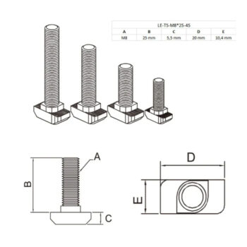 - T vijak(prohromski) / LE-EDEL-TS-M8*25-45 (pakovanje od 20 komada) 920,00 RSD sa PDV-om