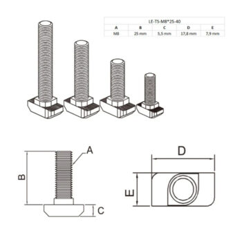 - T vijak(prohromski) / LE-EDEL-TS-M8*25-40 (pakovanje od 20 komada) 828,00 RSD sa PDV-om